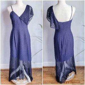 Club Monaco, New, Izanda Navy Blue Silk Lace Eyelet Ruffle Midi Dress, Size 4