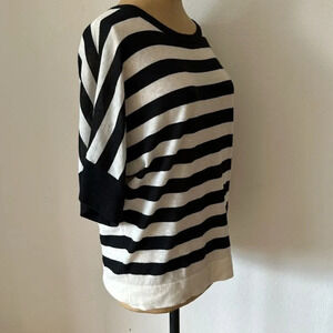 Club Monaco sz S cashmere black and white striped short sleeve sweater knit EUC