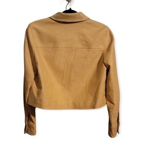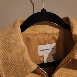 Extremely great used condition size 4. Club Monaco. Zipper front with button detail. Cropped jacket perfect with high waisted jeans and a tank for fall! Photos show two different lightings so you can see the jacket in both.