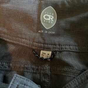 Excellent condition mountain bike short from Club Ride, gray color with front, side and back pockets. No visible signs of wear. Velcro adjustments at the waist, 7” inseam.