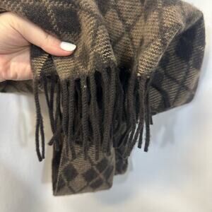 Club Room 100% Cashmere Brown Camel Diamond Fringe Scarf