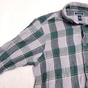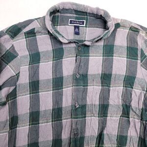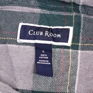 Club Room Baffalo Check Flannel Casual Button Up Shirt Mens Size L Gray Green