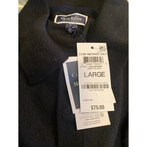 Club Room Black Merino Wool Blend Polo Collar Pullover Sweater Mens L NWT