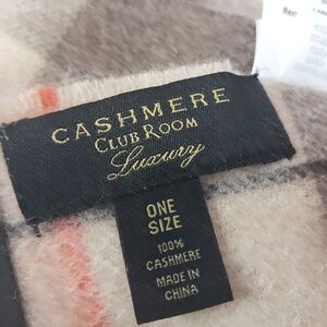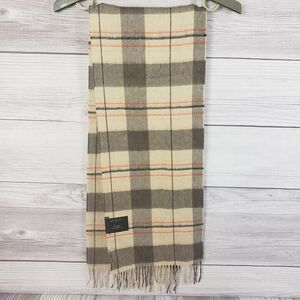 Club Room Cashmere Scarf Tan Plaid Fringe Men's