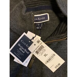 Club Room Charcoal Grey Quarter Zip Merino Wool Blend Sweater Size XL NWT