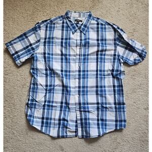 Club Room Chunky Plaid Short Sleeve Men's Button Down Shirt Blue/White XXL