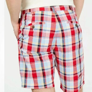Club Room Classic Fit Plaid 9" Shorts Red Blue Mens size 38