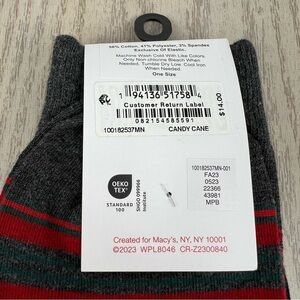 Club Room Crew Socks Candy Cane OS Grey/Black $14