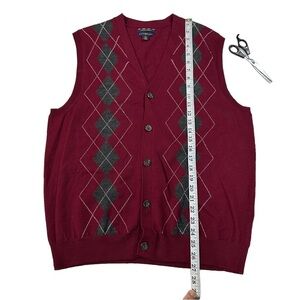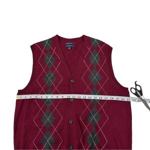 Club Room Estate Merino Wool Men Red White Argyle Sleeveless Sweater Vest Sz XL