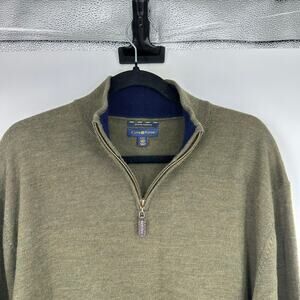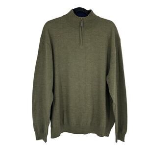 Club Room Estate Merino Wool Mens 2X Sweater Green 1/4 zip Pullover Preppy