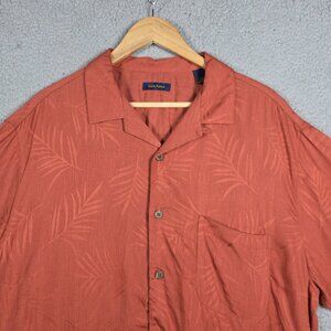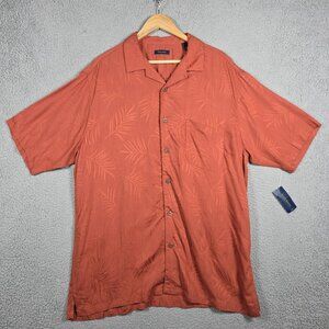 Club Room Hawaiian Shirt Mens Sz Large Brick Red Floral Camp Collar Vintage NWT