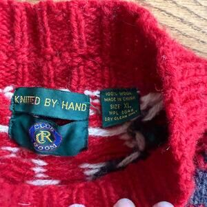 Club Room Knit By Hand Wool Sweater SZ XL Red Gray White Cozy Chunky