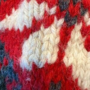 Club Room Knit By Hand Wool Sweater SZ XL Red Gray White Cozy Chunky