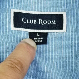 Club Room Large Men's Button Down Blue White Check 98% Cotton 2%Spandex Shirt