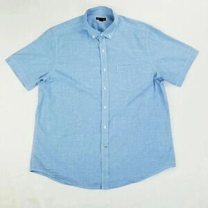 Club Room Large Men's Button Down Blue White Check 98% Cotton 2%Spandex Shirt