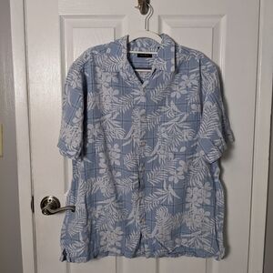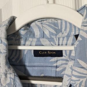 Club Room Linen/Cotton Tropical Foliage Casual Blue Button Down Size Large
