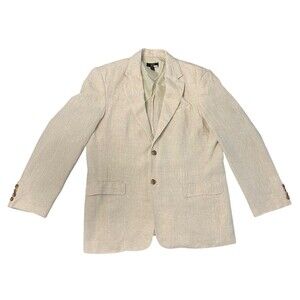Club Room Luxury 100% Linen Suit Beige Blazer L Pants 34x32 2 Piece Set