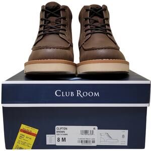 Club Room Men Clifton Moc Toe Combat Hiking Boots Size US 8M Brown Faux Leather