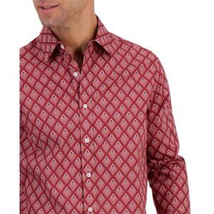 Club Room Men Karanda Button-Down Shirt Cotton Geometric Printed Red Size Small