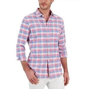 Club Room Men Malia Plaid Button Down Shirt Classic-Fit Nylon Pink Combo Size XL