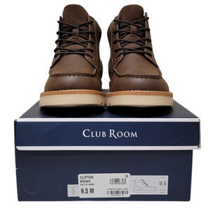 Club Room Men Moc Toe Combat Hiking Boot Clifton Size US 9.5M Brown Faux Leather