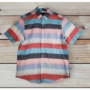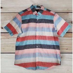 Club Room Men SZ L Button Up Casual Multicolor Short Sleeve Shirt Pit to Pit 24