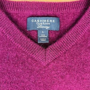 Club Room Men's 100% 2-Ply Cashmere Burgundy V-Neck Pullover Sweater Size L
