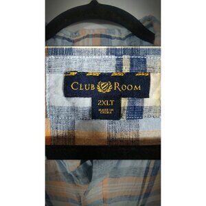 Club Room Men's Blue Coral Button Down Linen Tartan Big & Tall Shirt Size 2XLT