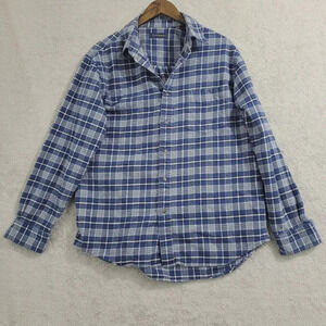 Club Room Mens Blue Plaid Flannel Shirt Size L Cotton Button-Up 21PT