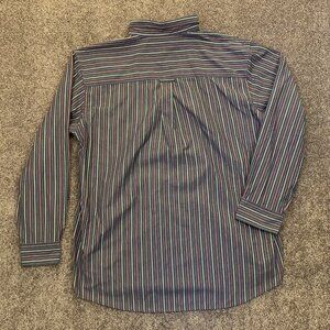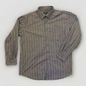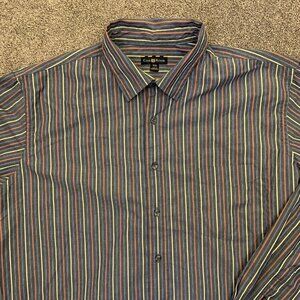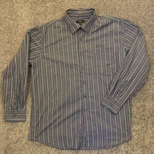 Club Room Men's Button Up Shirt Size XXL Gray Multicolor Striped Long Sleeves GUC