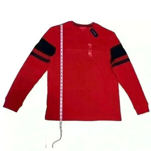 Perfect for weekends or casual days, this long-sleeved T-shirt from Club Room is designed with classic crewneck styling and football stripes at the sleeve