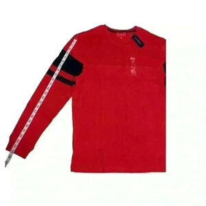 Perfecta para los fines de semana o los días informales, esta camiseta de manga larga de Club Room está diseñada con un estilo clásico de cuello redondo y rayas de fútbol en la manga.