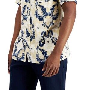 Club Room Mens Milton Block Stamp Shirt Silk Blend Pale Khaki Size X Large
