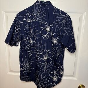 Club Room Men’s Navy Tropical Floral Casual Button Down Shirt Size Small GUC