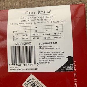 Club Room Men's Plaid Flannel Pajama Set Gray and Navy Blue Plaid Size XL
