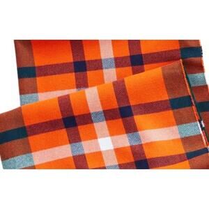 This is a Club Room men's plaid scarf in green, made of polyester. The scarf is regular in size and features a classic design with the Club Room logo as an accent. It is lightweight, suitable for spring season wear, and has a solid pattern. The scarf is pull-on style and has dimensions of 10.000 inches in length and 1.000 inch in width.