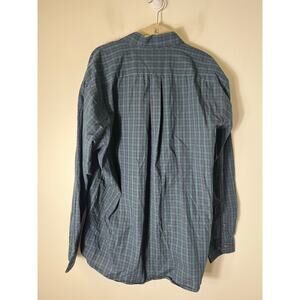 Club Room Mens Regular Fit Button Up Navy and Green Plaid Shirt Sz 17.5, 36/37