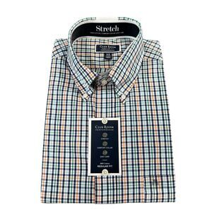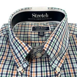 Club Room Mens Regular Fit Performance Plaid Stretch Dress Shirt Size 16.5 32/33
