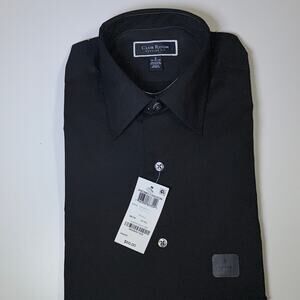 Club Room Men's Regular-Fit solid Dress Shirt, deep black small neck $50