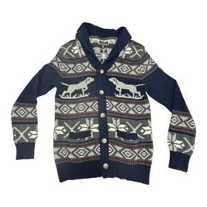Club Room Men's S Blue Long Sleeve Knit Cardigan Sweater Fair Isle Dog Prints