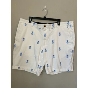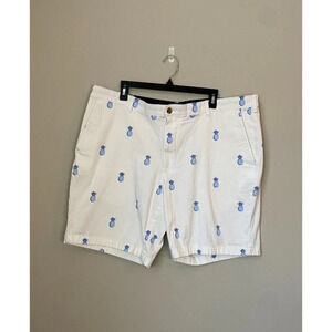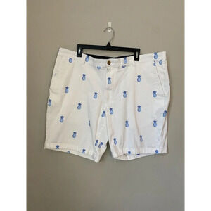 LIKE NEW Club Room Men's Size: 40W Classic-Fit Pineapple 9" Flat Front Chino Shorts in White - Tropical - Lightweight - Comfortable - Stretch - Beach - Vacation - Dad - Fun - Classic - Pina Chino Shorts - Unique - Preppy - Outdoors - Macy's - Big & Tall