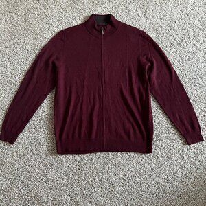 Club Room Men's Size L Merino Wool Blend Full-Zip Burgundy Sweater