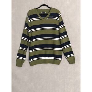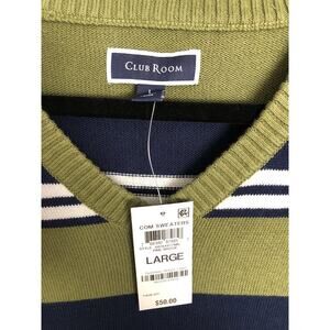 Club Room Men's Size Large Stripe V-Neck Green/Blue NEW