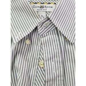 Club Room Men's Striped Slim Fit Button Down Shirt Long Sleeve Gray Men’s Sz L. Condition is Pre-owned. Shipped with USPS First Class Package.
