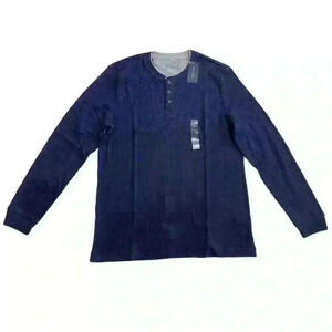 Club Room Men's Thermal Henley Shirt Navy Blue Size M Crewneck three button