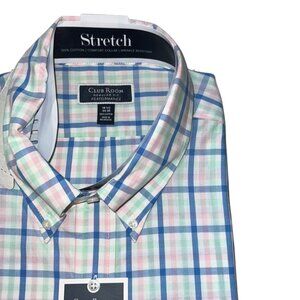 Club Room Men's White Button Up Dress Shirt w/ Multi-Color Plaid Print Size 18.5
