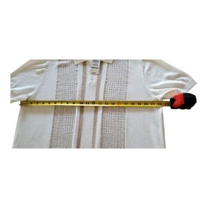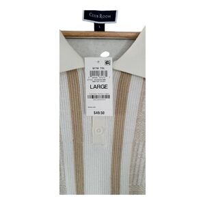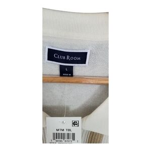Stylish Club Room polo in white with tan accents. Classic collar and short sleeves. Perfect for casual wear.