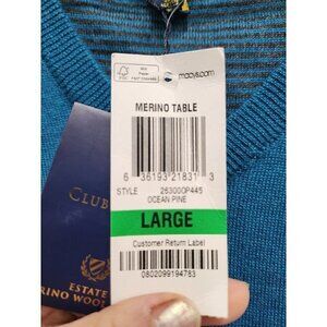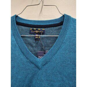Club Room MensTeal Merino Wool Sweater Large Long Sleeve V-Neck Pullover NEW