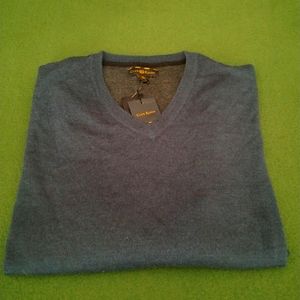 Brand new, Crew Blue, Merino wool and polyester blend V-neck sweater. Never worn, regular fit, ribbed-knit neckline, cuffs and hem. Standard 100 by OEKO-TEX certified as free from harmful levels of over 300 substances. Beautiful blue, super soft textured sweater, light and durable enough to wear solo or over a dress shirt/polo.