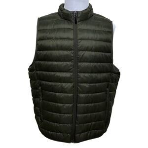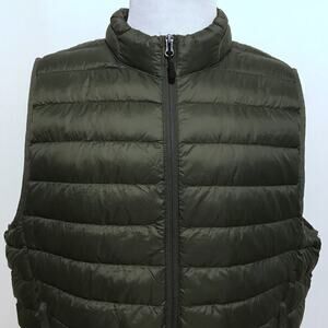 NWT. Quilted Packable Vest Puffer Jacket for Men Size XL. Olive, full zip, sleeveless, external side pockets with zippers for closure, 2 internal pockets shown in pic. As per tag "natural down, water resistant, heat retention". Pictures are part of description.